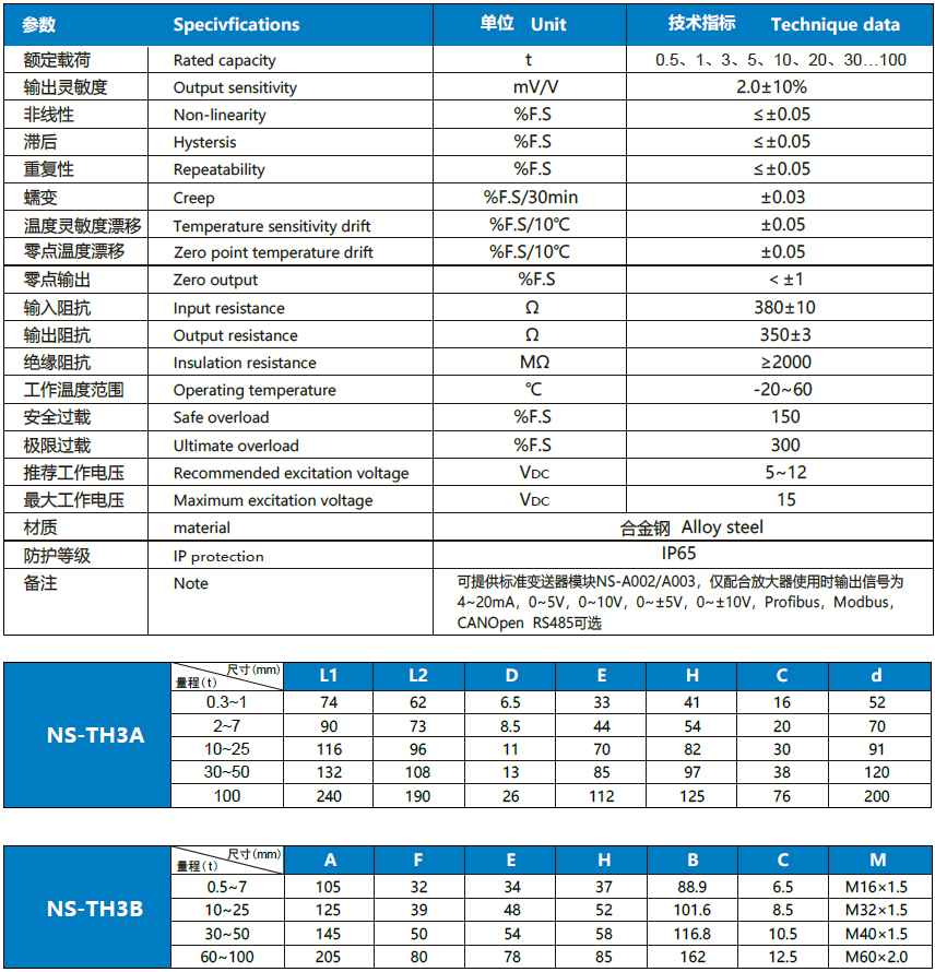 NS-TH5 系列稱重傳感器,采用優質鋁合金制作;