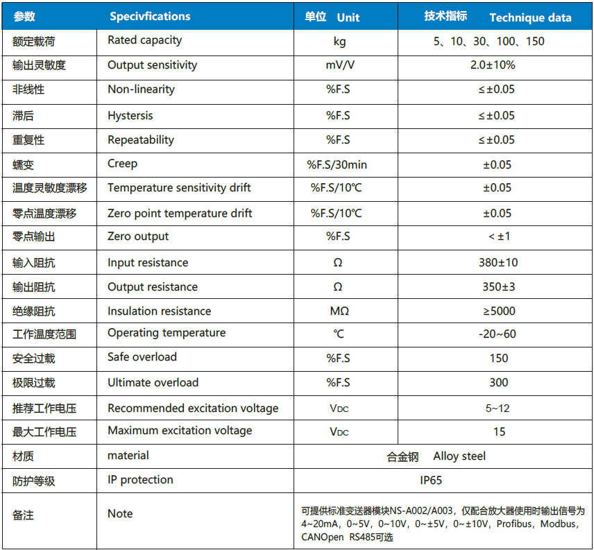 NS-TH4 系列稱重傳感器采用懸臂剪切結構;