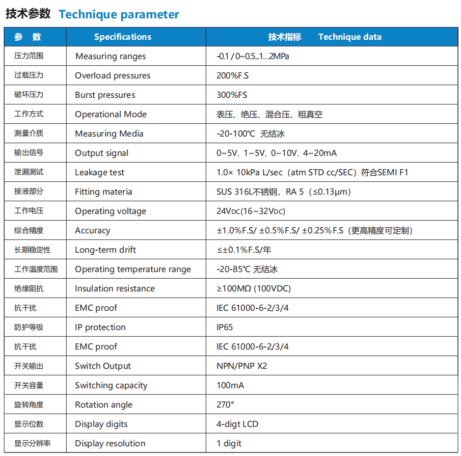 NS-PT10 系列 高純壓力變送器