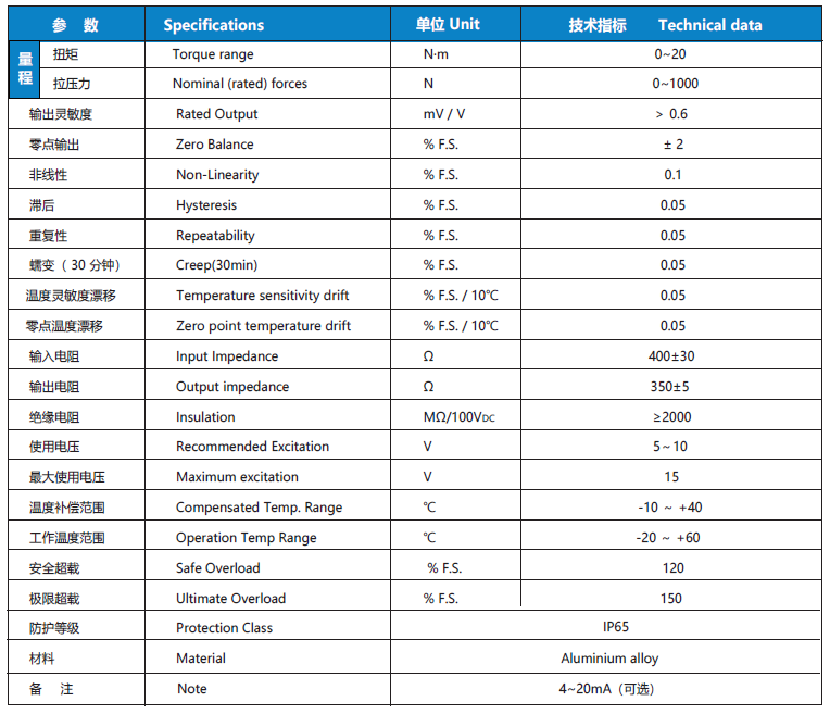 量程0~20Nm,精度±0.1%F.S