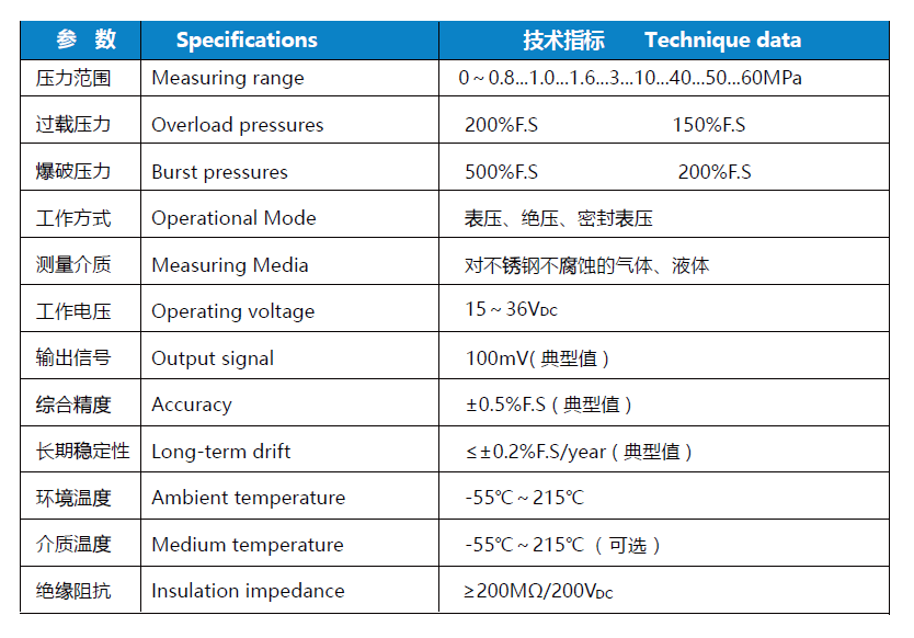 溫差極小,零點溫度補償≤ ± 0.008 % F.S/℃ typ.